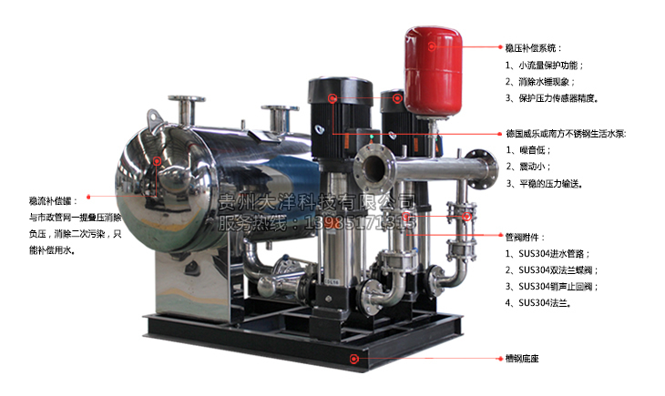 貴州特思靜新能源環(huán)保科技有限公司始創(chuàng)于1999年,公司于2010年底順利實(shí)現(xiàn)了搬遷重建目標(biāo),是國(guó)內(nèi)外以研究生產(chǎn)無(wú)負(fù)壓變頻供水設(shè)備、變頻恒壓供水設(shè)備、箱式無(wú)負(fù)壓供水設(shè)備、箱式一體化設(shè)備、不銹鋼水箱、玻璃鋼制品、水處理設(shè)備、污水提升設(shè)備、油水分離器、消防穩(wěn)壓設(shè)備、電氣控制設(shè)備...[詳細(xì)]